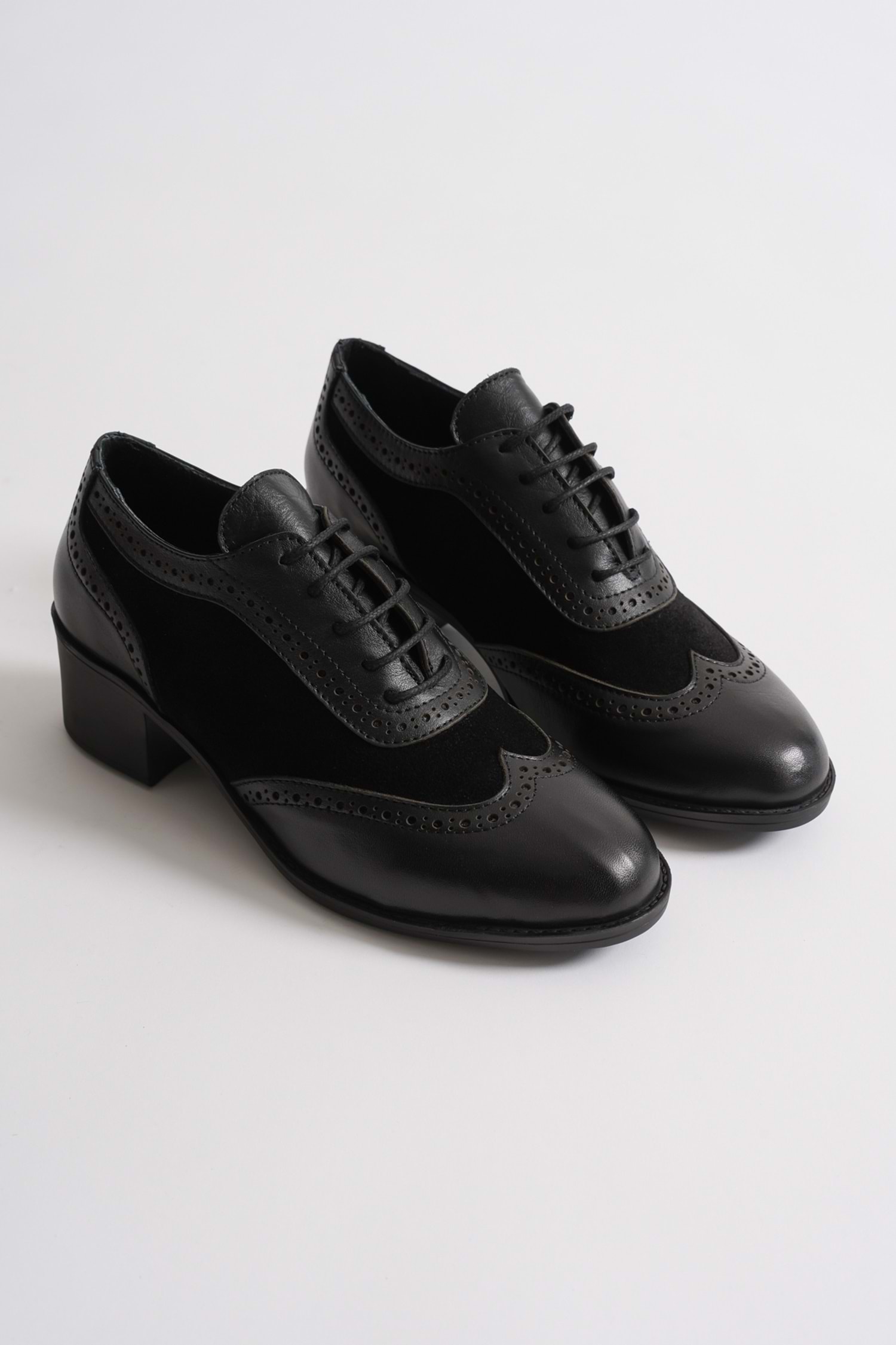 Kadın Hakiki Deri Topuklu Oxford Ayakkabı - Siyah