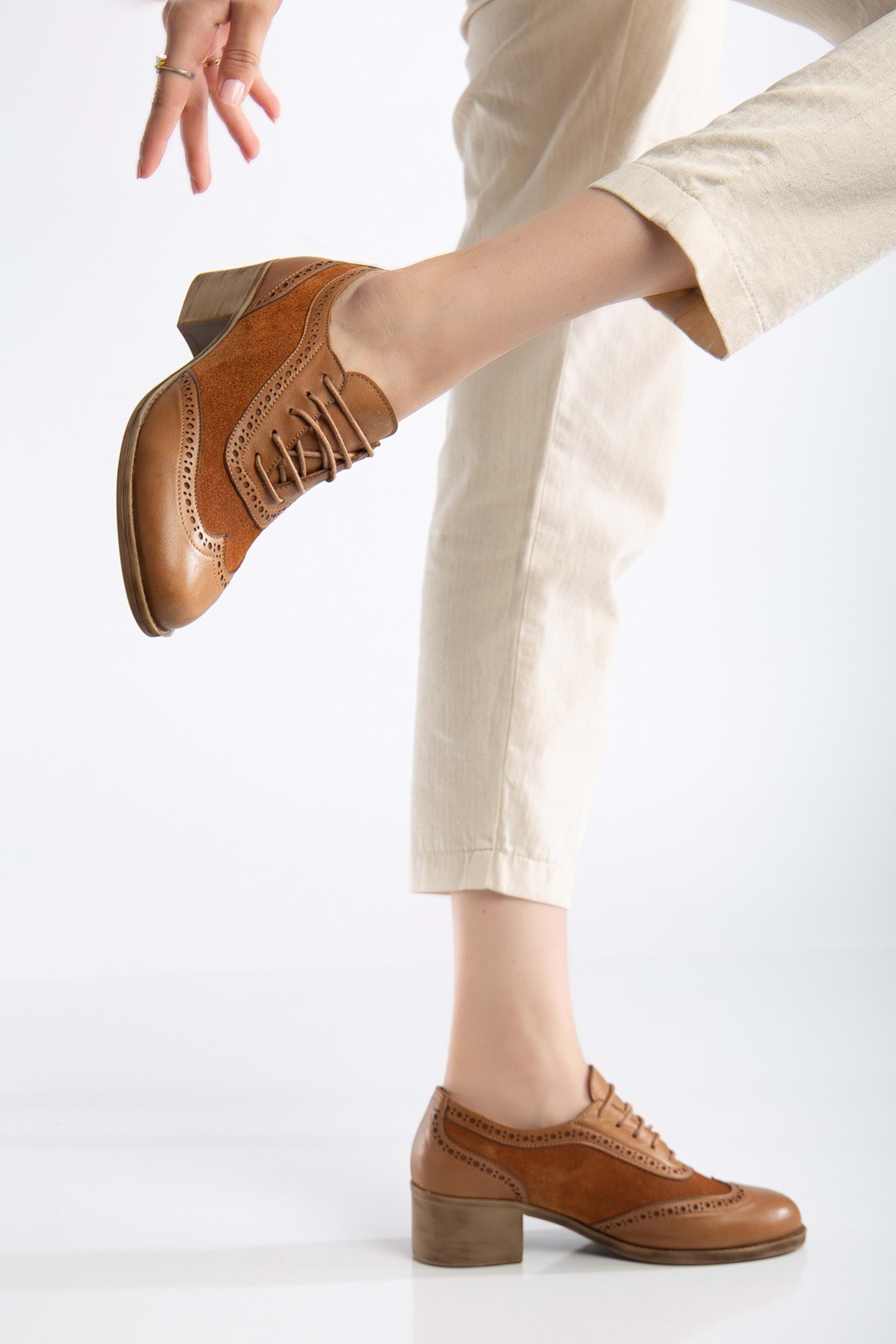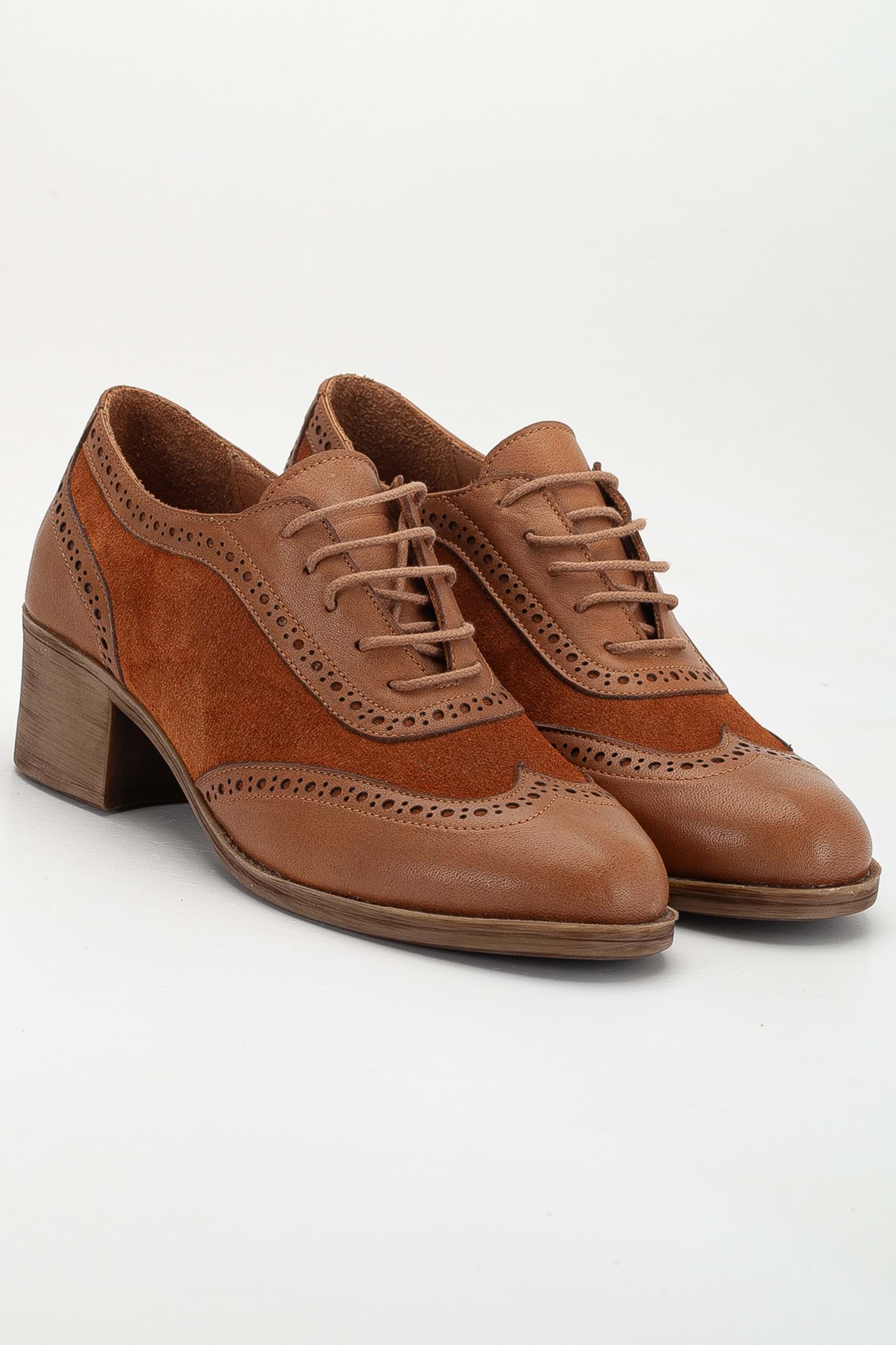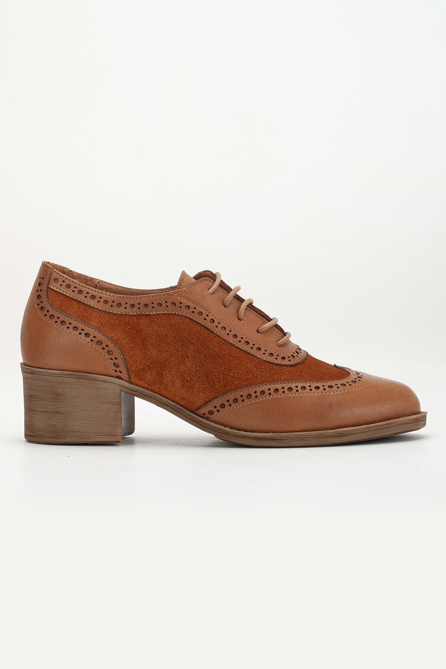 Kadın Hakiki Deri Topuklu Oxford Ayakkabı - Taba